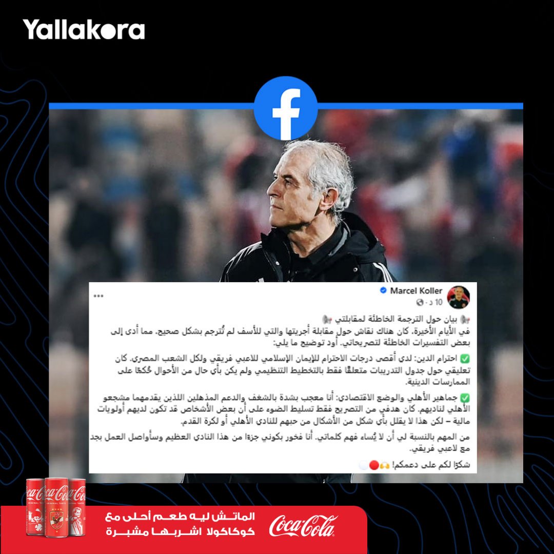فسر السويسري مارسيل كولر، مدرب النادي الأهلي، بعض تصريحاته الخاطئة والتي ترجمت مؤخرا بشكل خاطئ.