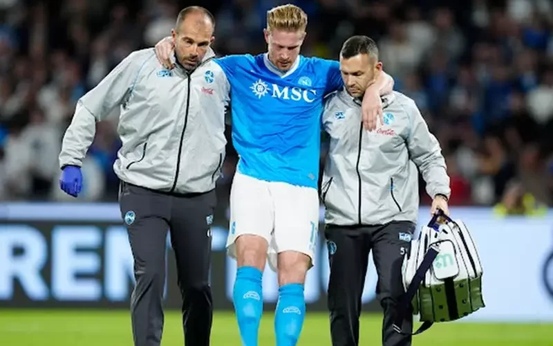 دي بروين تعرض لإصابة قوية في عضلة الفخذ خلال مباراة الفريق أمام إنتر ميلان في الدوري الإيطالي يوم السبت الماضي، ما سيبعده عن الملاعب لعدة أشهر.