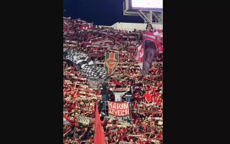 ظهر حكيم زياش في أرضية ملعب مركب محمد الخامس، قبل انطلاق أحداث مباراة الوداد أمام اتحاد طنجة، وحرص اللاعب المغربي على الحديث مع الجماهير وترديد الهتافات معهم.