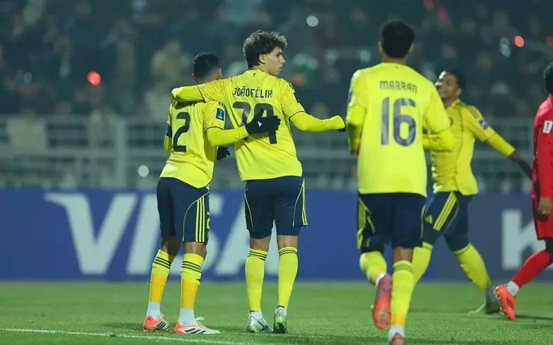 وافتتح النجم البرتغالي جواو فيليكس التسجيل للنصر في الدقيقة 12 من ركلة جزاء، فيما أضاف محمد سيماكان الهدف الثاني في الدقيقة 40، لينتهي الشوط الأول بتقدم الفريق السعودي 2-0