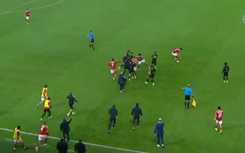 واشتعلت أزمة بين لاعبي الفريقين، عقب إلقاء آلة حادة نحو تريزيجيه نجم النادي الأهلي، ليشتبك معه لاعبو الفريق المغربي، للحصول عليها قبل أن يشاهدها حكم اللقاء.