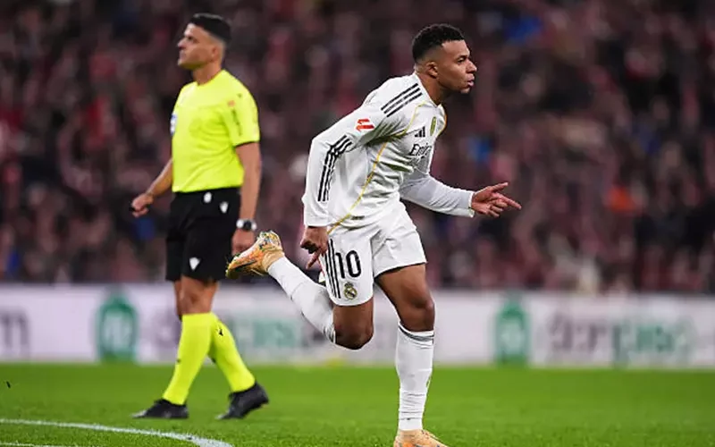 واصل النجم الفرنسي كيليان مبابي تألقه مع فريق ريال مدريد، بتسجيل هدفين وصناعة آخر، خلال مواجهة فريقه مع مضيفه أتلتيك بلباو، على أرضية ملعب سان ماميس، في إطار منافسات الأسبوع التاسع عشر لبطولة الدوري الإسباني.
